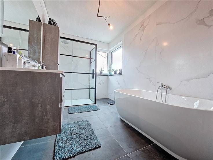 Superbe villa de construction récente, à parachever, habitable en semi plain-pied et comprenant: