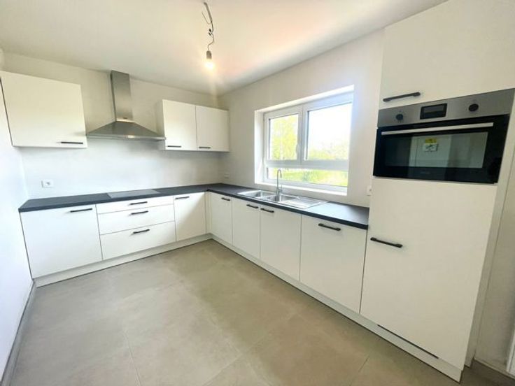 Op de tweede verdieping van dit project bevindt zich dit twee-slaapkamer appartement. Het appartement omvat een ruime inkomhal die toegang geeft tot de lichtrijke eet- en leefruimte met open keuken. Aansluitend aan de keuken is er een berging voorzien. Via een deur in de leefruimte bereikt men het terras met aangelegde tuin. Het appartement omvat verder nog een badkamer, apart toilet en twee slaapkamers. De afwerking kan nog volledig naar eigen smaak worden gekozen: keuken, badkamer, vloeren en binnendeuren. Er is een mogelijkheid om ondergrondse garage(s) en kelderberging(s), alsook bovengrondse autostaanplaats(en) aan te kopen. Voor meer informatie en/of een bezoek, contacteer Ellen: 054/69.39.37 of ellen@topo-immo.be *Prijs vermeld in de advertentie betreft prijs excl. BTW en kosten. *Mogelijkheid tot aankoop onder 6% BTW.