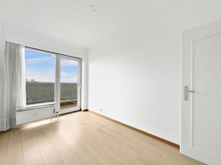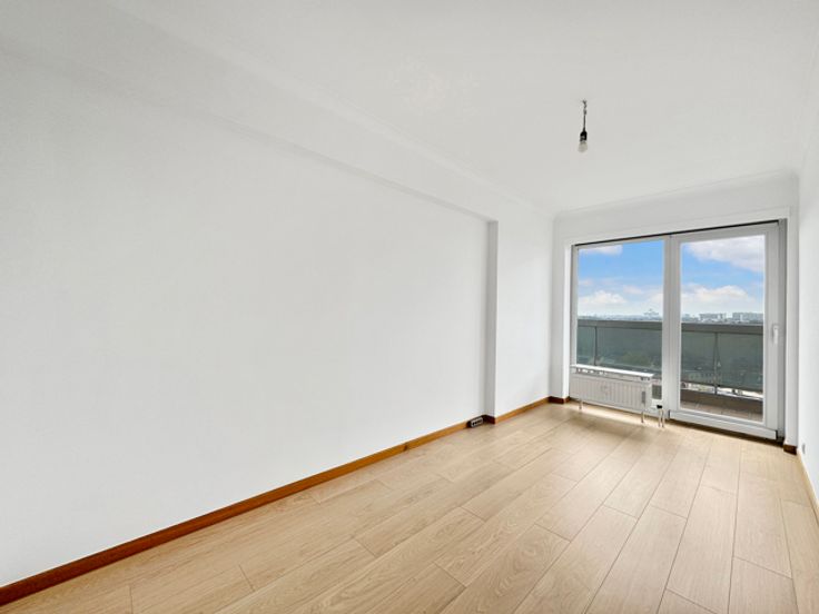 Neder-Over-Heembeek, op de 9e verdieping, hoekappartement met een ononderbroken uitzicht over heel Brussel, bestaande uit een grote woonkamer van 31 m², een inkomhal, een nachthal, 3 slaapkamers (14m², 11,50m² en 9,20m²), een badkamer, een apart toilet en een ruim terras van 26 m² dat uitkijkt op de slaapkamers en de woonkamer. Het gebouw is uitgerust met een COGENERATIE verwarmingssysteem, dubbele aluminium ramen, airconditioning, versterkte deuren en zonnetenten. Dubbele garage beschikbaar tegen meerprijs. Uitstekende EPB: C-. INFO EN BEZOEKEN: CENTURY 21 Best House 02/268.21.50