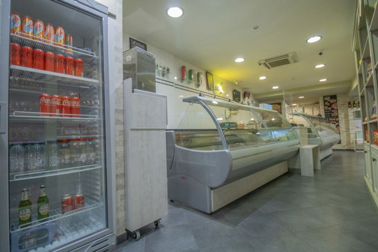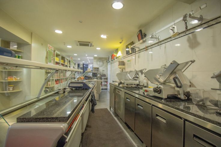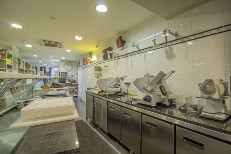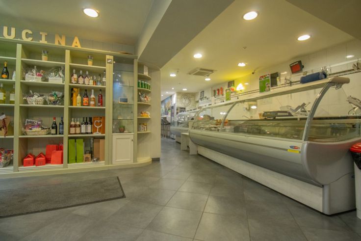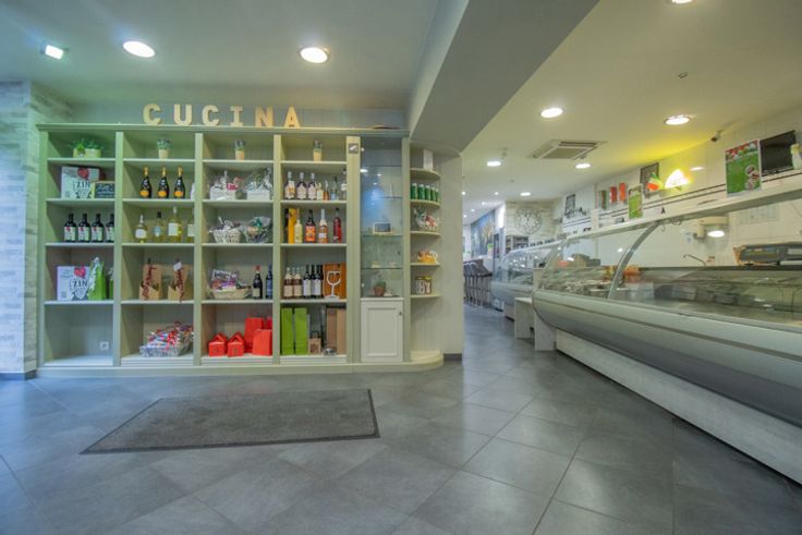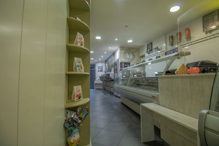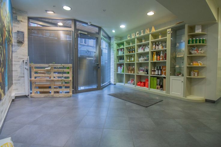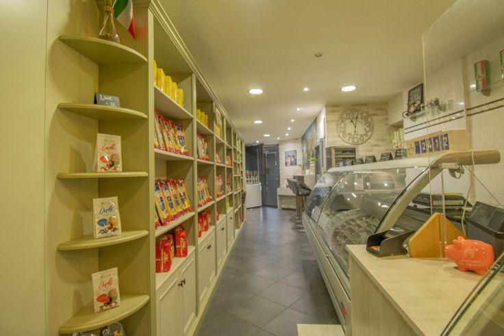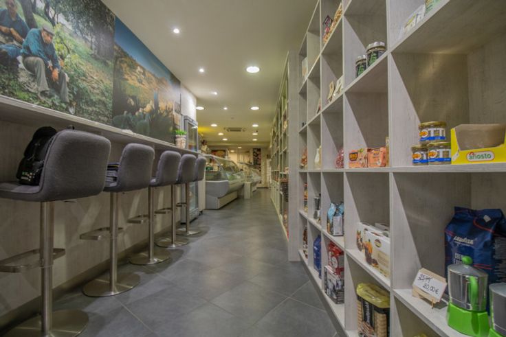 Au rez-de-chaussée, un petit magasin d'alimentation italienne offrant également 6 places sur chaises hautes.