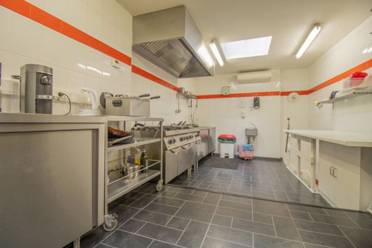Au 1 étage, une cuisine professionnelle pour le service traiteur avec tous ses ustensiles.