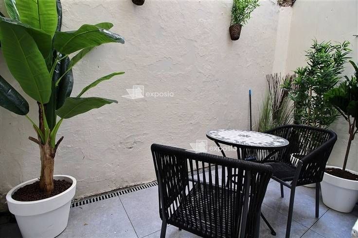 Begane grond: Studio van ± 30m² bestaande uit een woon / eetkamer met een volledig uitgeruste open keuken, een badkamer met toilet en een binnenplaats van ± 6m².