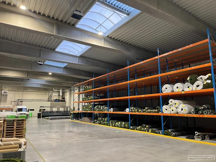 Ruim magazijn te huur van 475 m³Recent gebouw, verwarmd, alarm aanwezigGebruik van laadkaai mogelijk vooraanGeautomatiseerde sectionaalpoort achteraanSanitair aanwezigMomenteel uitgerust met rekken, kunnen weggehaald worden.Onmiddellijk beschikbaarHuurprijs: € 1900 + lastenInteresse in een bezoek? Bel me gerust.