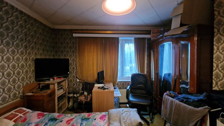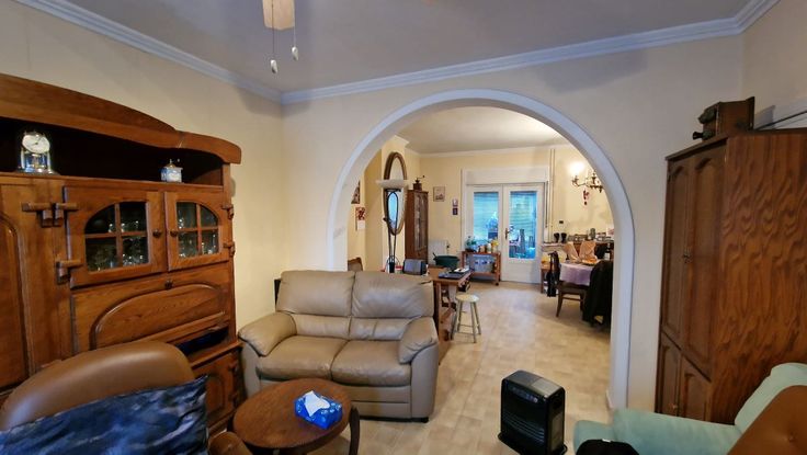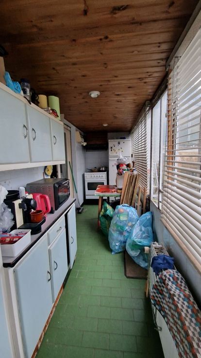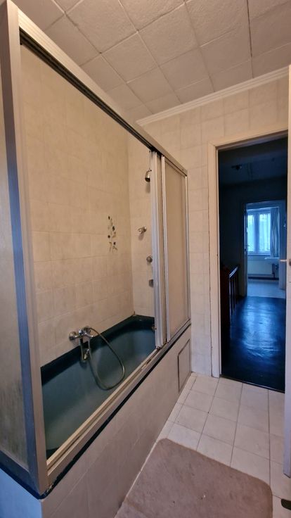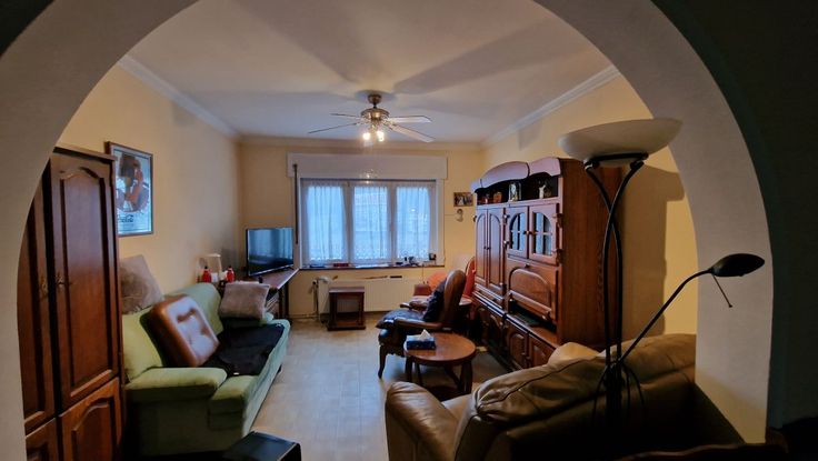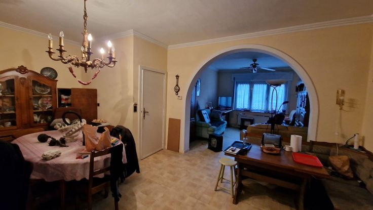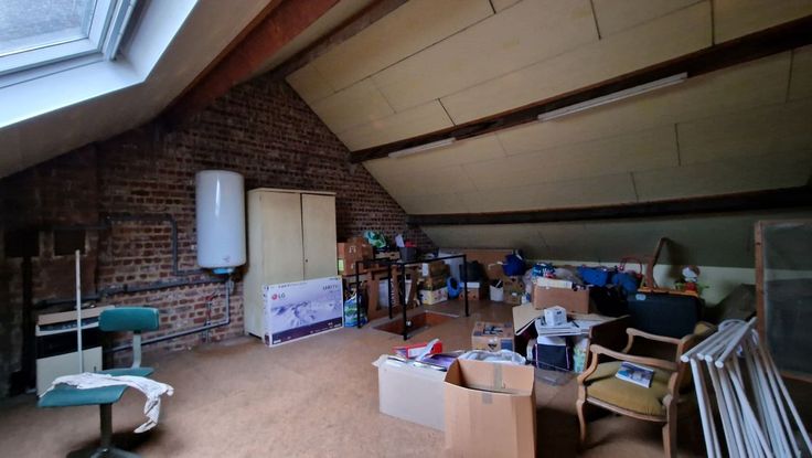 A la limite de Waterloo, et à proximité de nombreuses facilités socio-économiques (commerces, grandes surfaces, écoles, arrêts de bus, gare, entrées d'autoroutes). Cette maison mitoyenne 2 façades se compose comme suit : au rez-de-chaussée : un hall d'entrée avec wc, un grand séjour/salle à manger en L, une cuisine non équipée avec accès vers le jardin. Au premier étage : un hall de nuit spacieux desservant 2 grandes chambres à coucher, une salle de bains et un wc séparé. Magnifique grenier aménageable accessible par un escalier escamotable. En sous-sol : plusieurs caves avec accès vers le jardin, et un garage (à considérer plutôt comme espace de rangement). Châssis en PVC avec doubles vitrages + volets. Compteur électrique bihoraire. Citerne d'eau de pluie avec pompe. Cette maison spacieuse est à rénover, mais elle est habitable. Elle offre de nombreuses possibilités d'aménagement. La maison est actuellement louée (bail verbal).