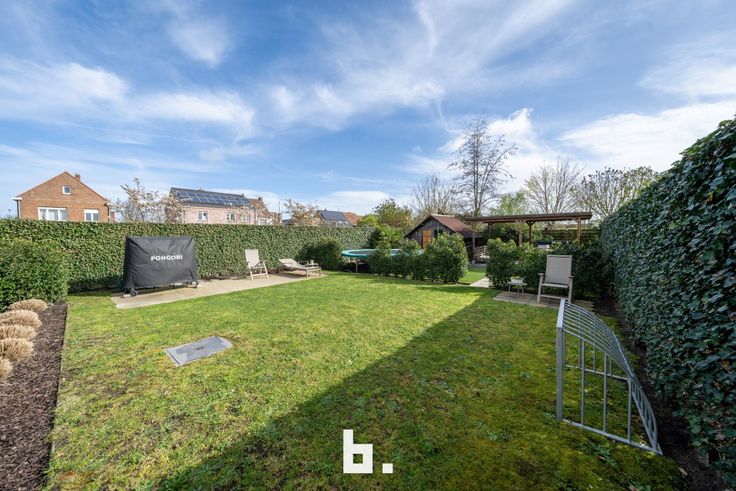 Deze halfopen bebouwing is schitterend gelegen in een doodlopende woonwijk. Heerlijk rustige ligging met alle dagdagelijkse voorzieningen dichtbij. De indeling is als volgt: BENEDENVERDIEPING: inkomhal met gastentoilet en directe toegang tot praktijkruimte/kantoor (vooraan) & privé woongedeelte (achteraan), sfeervolle & lichtrijke leefruimte met tuinzicht, ingerichte halfopen keuken met eetmogelijkheid (kookplaat, dampkap, koelkast, oven, microgolfoven, dubbele spoelbak, vaatwasser), centrale traphal met berging. BOVENVERDIEPING: nachthal met afzonderlijk toilet, 3 ruime slaapkamers, badkamer (ligbad, inloopdouche, wastafelmeubel). ZOLDERVERDIEPING: ruime geïsoleerde zolder voorzien van uitschuifbare zoldertrap. BUITENOMGEVING: ruime oprit voor meerdere auto's, afsluitbare carport, verzorgde tuin met houten terras palend aan de woning, tuinhuis, buitendouche, overdekt terras achteraan de tuin. Extra troeven: - uitstekend EPC (69 kWh/m²) = zeer energiezuinige woning - warmtepomp (airco) - nieuwe hoogrendementsketel - zonnepanelen - recent vernieuwde oprit - badkamer met bad en nieuwe inloopdouche - gezellige zuidoost georiënteerde tuin - vergunde praktijkruimte (2020)
