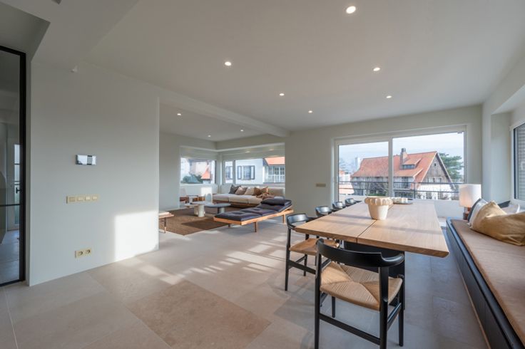 Prachtige art deco villa op enkele stappen van de Zeedijk van Duinbergen. De villa van 1936 werd helemaal in ere hersteld met oog voor detail en de authentieke elementen, doch rekening houdend met de huidige energienormen (A-label). Indeling: inkomhal met vestiaire/bureauruimte met een gastentoilet, zeer mooie open leefruimte met eetkamer met enorm veel lichtinval uitgevend op de verschillende terrassen, volledig geïnstalleerde open keuken (Miele, Quooker). Op de verdieping zijn er 4 ruime slaapkamers waarvan de master bedroom met een en-suite badkamer. De andere 3 slaapkamers delen een badkamer met bad en douche. Via de Bergdreef toegang tot de grote inpandige garage met plaats voor berging en waar alle technieken werden ondergebracht met o.a. een laadpaal voor elektrische voertuigen. Veiligheidsdeur als toegang tot de kelder met ook de wasruimte. De villa werd voorzien van zonnepanelen, domotica, alarmsysteem, camerabewaking, ... EPC: 85 kWh/m² - UC: 2861651
