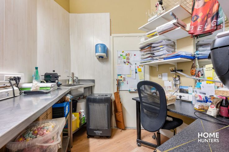 Het pand beschikt op het gelijkvloers over een gezellige handelsruimte, een bureau/keuken en berging.