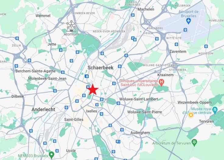Commerces et bureaux aux alentours : Tours des Finances, SPF Santé Publique, Securex, P&V Assurances, restaurant GUS, Delhaize, etc.