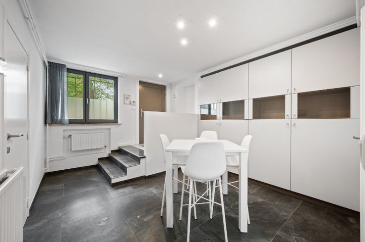 Het pand heeft een groot terras en voldoende parkeergelegenheid, wat zowel binnen als buiten voor een aangename omgeving zorgt. De kelder beschikt over inkomhal met een eerste deur die toegang heeft tot de parking, een wachtkamer, twee vergaderzalen, een volledig uitgeruste keuken en twee kelders.