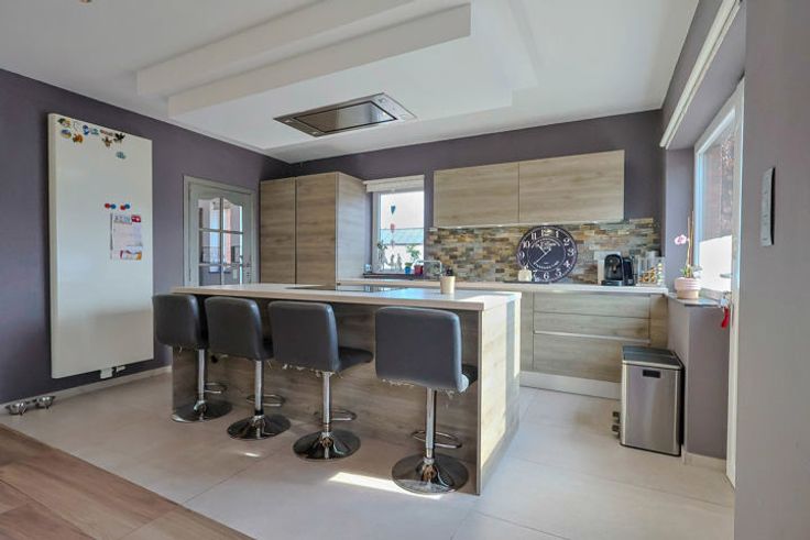 Cette propriété de plain-pied vous accueille dans un spacieux séjour baigné de lumière naturelle, harmonieusement ouvert sur une cuisine équipée moderne, créant ainsi un espace de vie convivial et fonctionnel.