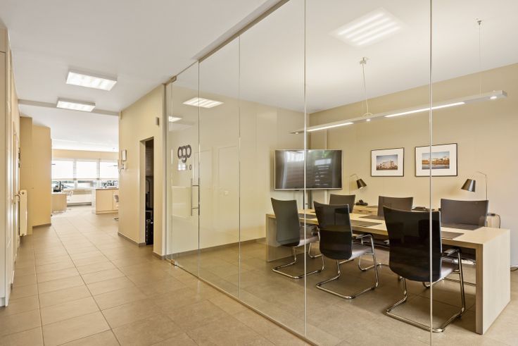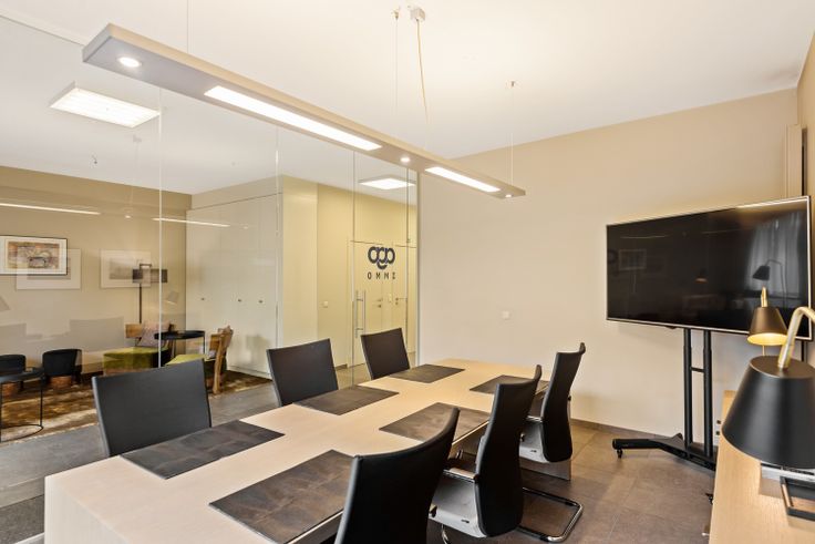 Naast de lounge/zitruimte bevindt zich nog een vergaderruimte (17m²) die gescheiden is door een glazen wand.