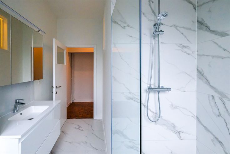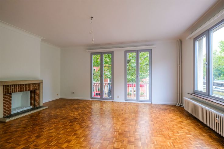 In dit standingvol hoekgebouw staat het appartement op de eerste verdieping te koop. Qua ligging is het uitmuntend. Dicht bij winkels, openbaar vervoer, invalswegen, park, station, ... Het appartement is ruim (ca 117 m2) en recent helemaal vernieuwd. Zo zijn er overal nieuwe ramen, is er een nieuwe keuken en badkamer, is de elektriciteit vernieuwd (en goedgekeurd) en is alles geschilderd. Instapklaar dus. Je komt via een beveiligde deur het appartement binnen in een ruim inkomhal. De living en eetplaats liggen op de hoek vooraan. Dat garandeert voldoende lichtinval en geeft een ruimtelijk gevoel. Naar eigen wens kan je de woonkamer afscheiden van de eetkamer of kan je van de eetkamer een extra ruimte maken als bureau of speelruimte. De slaapkamers liggen meer in de zijstraat en achteraan. Dat geeft voldoende rust. De kamers zijn ruim en voorzien van ingemaakte kasten. De keuken is helemaal nieuw en voorzien van alle gebruikelijke toestellen. De moderne badkamer heeft een grote inloopdouche. Het wc is apart. Verder zijn er nog 2 terrassen en in de kelder heb je nog een privatieve ruimte en een gemeenschappelijke fietsenberging. Echt een aanrader, dit appartement. Zeker als je van ruimte houdt. Renovatieplicht: onbekend
