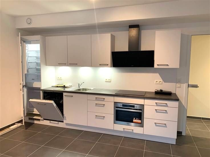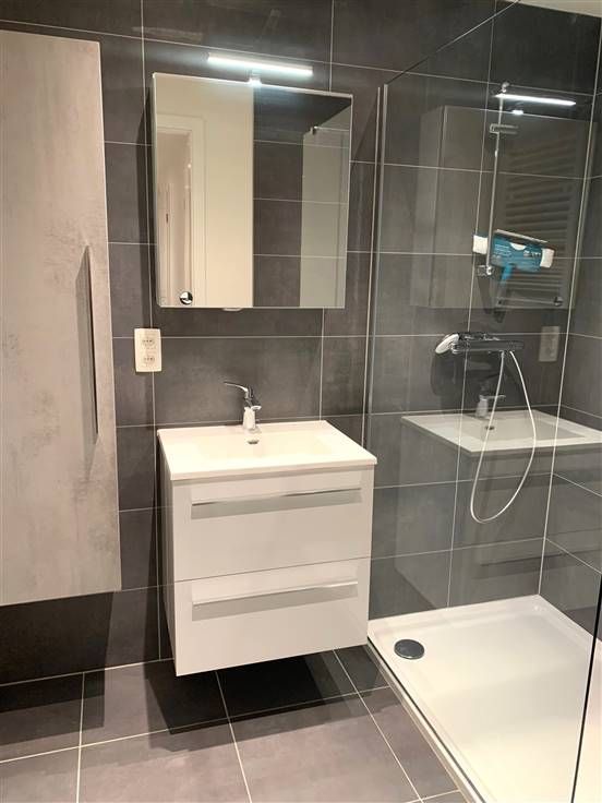 Très spacieux et lumineux STUDIO - 1ère OCCUPATION, situé au 1er étage (pas d'ascenseur) d'une nouvelle petite résidence à 2 pas de la gare, à proximité de toutes les facilités (bus, commerces, ...) idéal pour personne seule ou jeune couple, d'une superficie de +/- 55 m², entièrement carrelé, comprenant: hall d'entrée avec coin vestiaire, grande pièces de séjour de 36 m² avec cuisine américaine super-équipée (taques inductions, lave-vaisselle, four multifonction, frigo, congélateur, ....), salle de douches avec une grande douche italienne, meuble lavabo, radiateur sèche-serviette, buanderie et toilette. Tous les luminaires sont déjà posés, stores, ... Autres: double-flux, vidéophone, thermostat ambiance, parking vélos, fibre optique. PEB : A (62 kWh/m².an - EP Totales: 3.754 kWh/an - n° 20221222502652) Libre immédiatement. Prov. charges 90 € / mois (eau chaude, chauffage, charges communes) Visite et renseignements : AD-IMMO srl 081/74.73.75