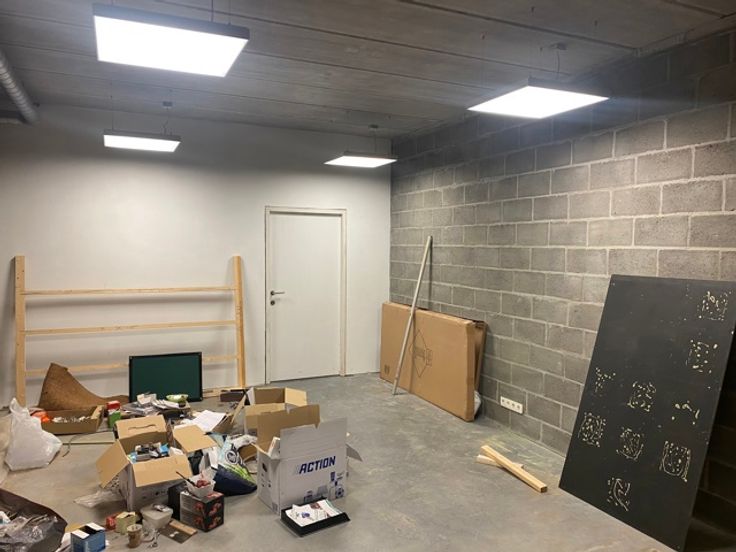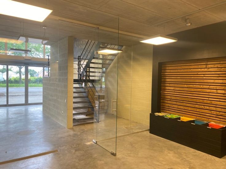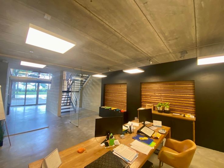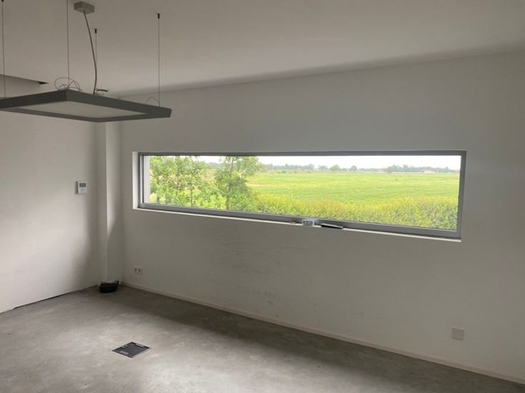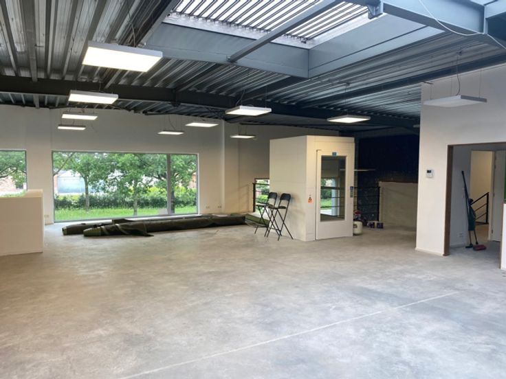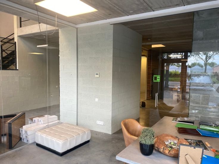 De mooie betonvloeren geven een strakke en moderne uitstraling, terwijl de speciaal aangepaste trap rugbelasting vermindert, wat het comfort van het personeel ten goede komt. Het gebouw is voorzien van airconditioning in alle ruimtes, wat zorgt voor een aangenaam binnenklimaat, ongeacht het seizoen.