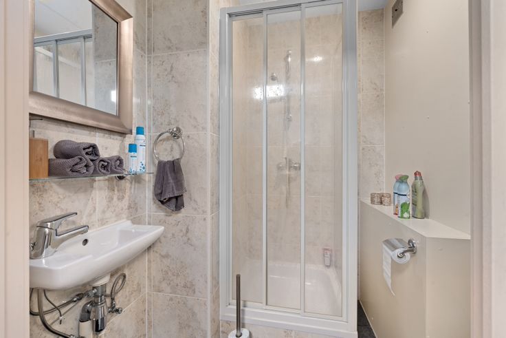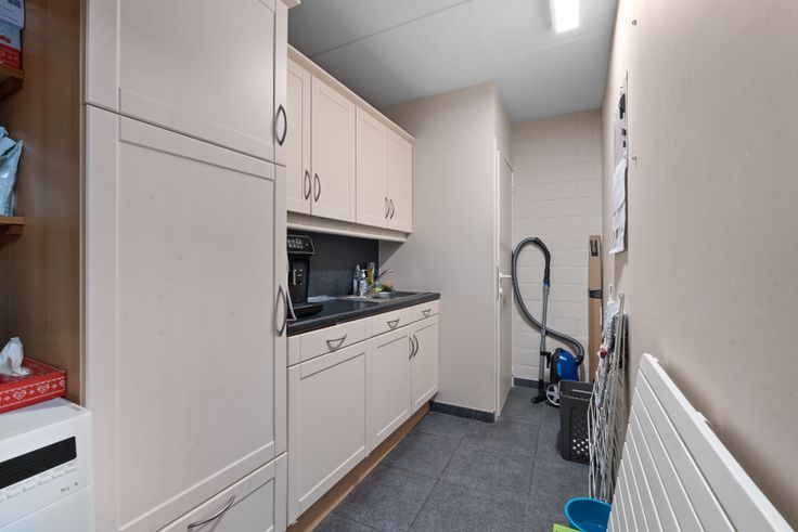 Indeling: inkom, polyvalente ruimte, doucheruimte en toilet, keuken, koer en bergruimte.