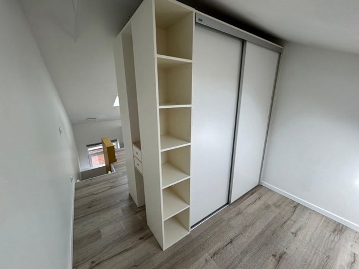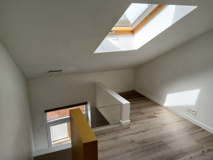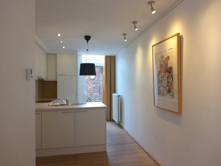 Het huis beschikt over 1 ruime slaapkamer annex bureau ruimte, een gezellige woonkamer, een moderne keuken, een eigentijdse badkamer en een terras. De indeling is praktisch en efficiënt: bij het binnenkomen tref je een hall met een handige bergkast aan, een beetje verstopt, en verder op het gelijkvloers de keuken met toegang tot het stadsterras. Via de trap bereik je de eerste verdieping waar de gezellige leefruimte en badkamer zijn gevestigd. De slaapkamer en eventuele bureauhoek bevinden zich daarboven waardoor privacy en comfort worden gewaarborgd.