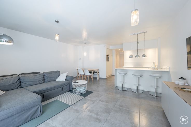 Gezellig 1 slaapkamerappartement in een recent gebouw met mooi, ruim terras gelegen op de Nestor de tièrestraat te Knokke. Indeling: inkomhall met apart toilet, mooie lichtrijke leefruimte met toegang tot het ruime terras. Ruime slaapkamer met ingemaakte kasten, badkamer. Berging in het gebouw.
