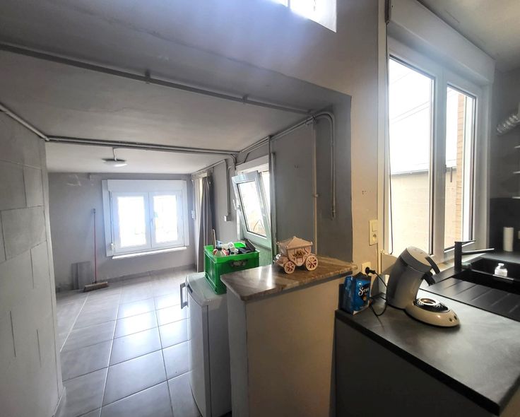 Net zoals Diego Maradonna Gods hand gebruikte om te scoren...kan u uw handen gebruiken om de laatste afwerkingen te doen aan deze woning. Zo woont u weldra op het populairste pleintje van Peutie. Indeling : inkomhal aansluitend op de eet- en woonkamer - nieuwe keuken (3 jaar oud) - berging - wc - veranda. Op de 1ste verdieping zijn er 2 slaapkamers (21/19 m²) en een badkamer (douche + lavabo). Van de zolder (vast trap reeds aanwezig) kan u vlotjes nog 2 slaapkamers maken. Tevens is er een kelder. Welkom in Peutie!