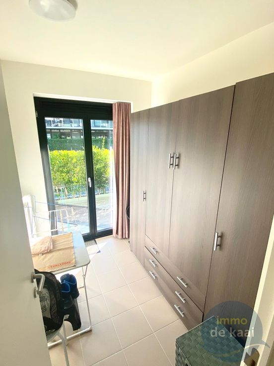 IN OPTIE - Recent gelijkvloers appartement aan de Veurnevaart met groot zuidgericht terras. Ingericht met 2 slaapkamers, waarvan 1 kleine kamer voor 1 persoon of dressingkamer. Berging met aansluiting wasmachine. Verwarming op aardgas. Mogelijkheid tot aankoop parking met bijhorende kelder (25.000€)