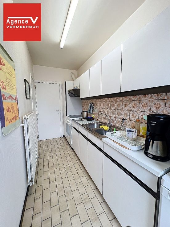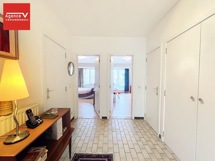 Dit uiterst ruim appartement (91m²) bevindt zich op de eerste verdieping van de Residentie “Blekkaard” en werd steeds goed onderhouden. Door de oriëntatie van het gebouw geniet dit appartement steeds een mooie lichtinval, mede door de mooie ruime glaspartijen in de woonkamer. Het appartement is ingedeeld als volgt: ruime inkomhall met royale vestiairekast – berging – lichtrijke woonkamer ingedeeld als salon en eetkamer, kamerbrede schuiframen met balkon waar u een open zicht geniet – keuken met aparte berging – achteraan bevinden zich 2 ruime slaapkamers, waarvan 1 slaapkamer toegang biedt tot een terras waar u ’s morgens kan genieten van de zon. Badkamer ingericht met enkele lavabo, bidet en bad er is tevens ook een aansluiting voor een wasmachine voorzien. slpkr 1: 14,5m² slpkr 2: 13,2m² De koper heeft de mogelijkheid om een inpandige garagebox (nr 2) aan te kopen, gelegen aan de voorgevel uiterst links van het gebouw, voor de prijs van € 39.500. De garage is voorzien van elektriciteit + automatische sectionale poort. Afmetingen garage: Breedte: 2.77m Lengte: 5.90m Breedte poort: 2.29m EPC: C-label Dit appartement is uiterst goed gelegen, nabij een residentiële en standingrijke villawijk. Op wandelafstand van het strand. Vlotte verbinding met de A10.