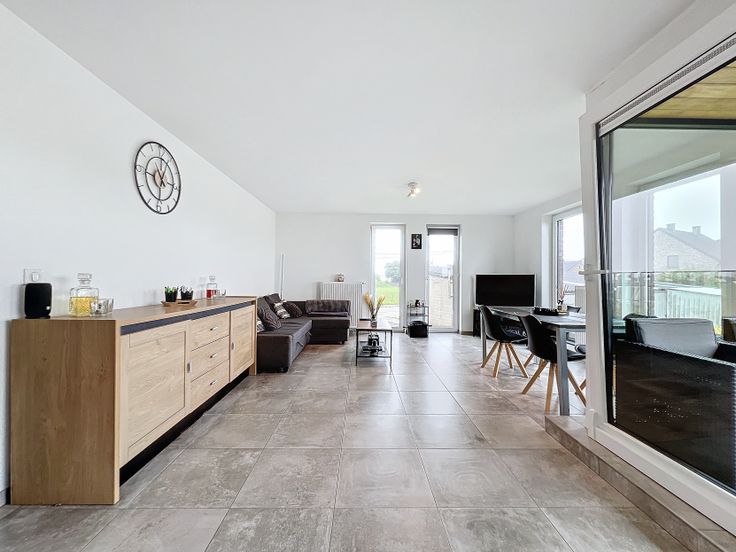 Muller & Partners vous propose à la vente ce superbe appartement 2 chambres, en excellent état (aucun travaux à prévoir), situé à proximité du centre de Blégny (700 m) ainsi que de toutes les commodités tels que des arrêts de bus (67 et 108 à 100 m), attractions touristiques (Blegny-Mine à 1’) et commerces (poste à 2’, banque à 1’, épicerie à 1’, boucherie à 2’, restaurant Carpe Diem à côté de l’immeuble, etc.). L’appartement se déploie sur une superficie totale brute de 91,3 m2 et se compose d’un hall d’entrée, d’un d’une spacieux et lumineux séjour de 32 m2, cuisine de 9 m2, hyper équipée, et ouverte sur le séjour (four, hotte, taque vitro, frigo/congélateur, lave-vaisselle), d’un débarras de 2,5 m2, d’une agréable terrasse en bois de 5 m2 accessible par le séjour, d’une buanderie de 2,5 m2, d’un hall de nuit desservant 2 chambres (9 M2 et 12 M2), une toilette individuelle avec lave-mains et une salle de bain avec baignoire et meuble double évier. Divers : terrasse exposée plein sud, chauffage central au gaz de ville (chaudière à condensation), châssis PVC double vitrage de marque SCHUCO, pas d’ascenseur, emplacement de parking non privatifs devant le bâtiment. Avis aux investisseurs, l’appartement est actuellement loué par d’excellents locataires ! (Informations données à titre indicatif et sous réserve d’erreur(s) – cette annonce doit être considérée comme un appel d’offres et non une promesse de vente)