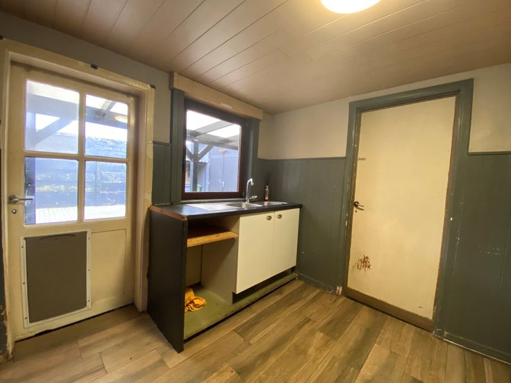 Deze te renoveren woning met veel potentieel en ruim magazijn heeft een indeling als volgt: