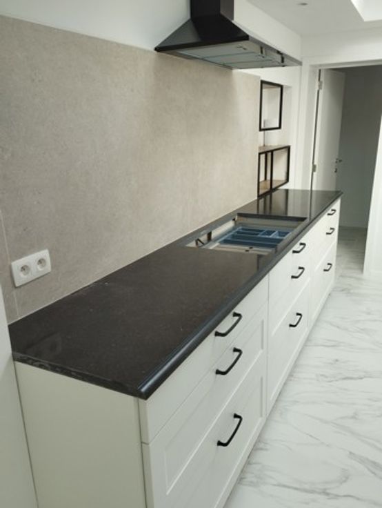 La cuisine est entièrement équipée, (manque juste la taque à fournir selon vos goûts personnels) , four, micro ondes, lave vaisselle, frigo, plan de travail en pierre. Tout est fait avec de bon matériaux et de belles finitions.