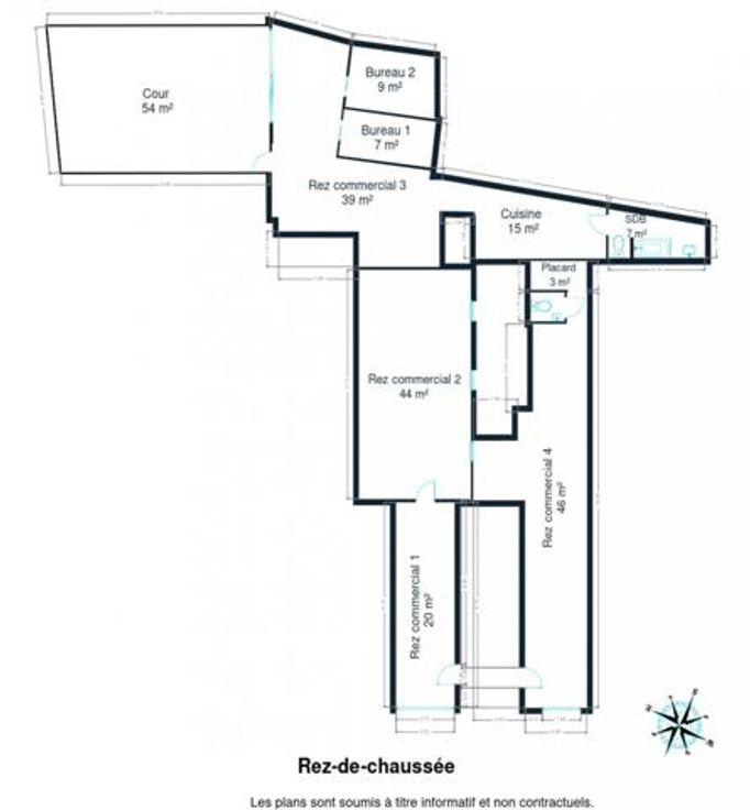 Il est composé d'un hall d'entrée séparant 2 rez commerciaux.