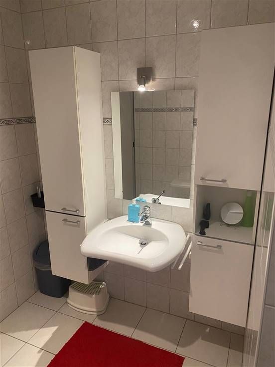 RUIM, KWALITATIEF, ENERGIEZUINIG EN ROLSTOELVRIENDELIJK APPARTEMENT 94M² MET 2 SLAAPKAMERS, TERRAS EN BINNEN-AUTOSTAANPLAATS. 1ste verdieping met lift - ligging in centrum Liezele (Puurs-Sint-Amands) met vlotte bereikbaarheid via N17, N16 en A12. Inkomhal met vestiaire / grote en lumineuze living met eetplaats en ingerichte open-keuken (totale opp.: 46m²) / berging met wasplaats / 2 slaapkamers (15m²; 3,5 x 2,9m) / badkamer met dubbele wastafel inloopdouche en wc / terras (6m²). Autostaanplaats in ondergrondse garage. Gemeenschappelijke tuin. Appartement is voorzien van lichtarmaturen en raamdecoratie aan alle ramen. Deuren en badkamer zijn aangepast voor rolstoelgebruikers of minder mobiele gebruikers. Lasten: € 80 / maand.