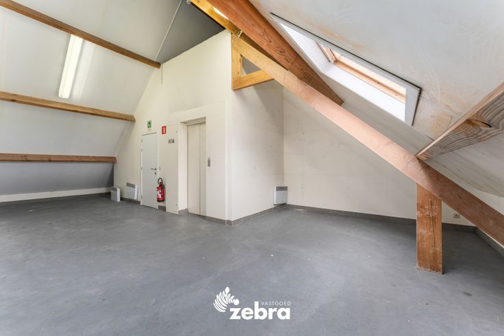 Gelijkvloerse verdieping: etalageruimtes (zowel links als rechts), open polyvalente ruimte die vrij ingedeeld kan worden. Deze ruimte is voorzien van airco (op basis van een warmtepomp).