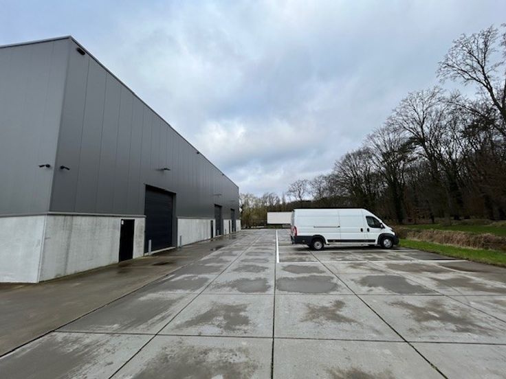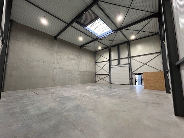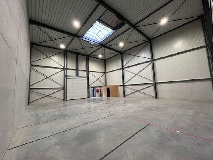 Het magazijn bevindt zich langs de achterkant van het bedrijfsgebouw. Het heeft een eigen toegangsdeur en sectionale poort. De vrije hoogte bedraagt 8m.