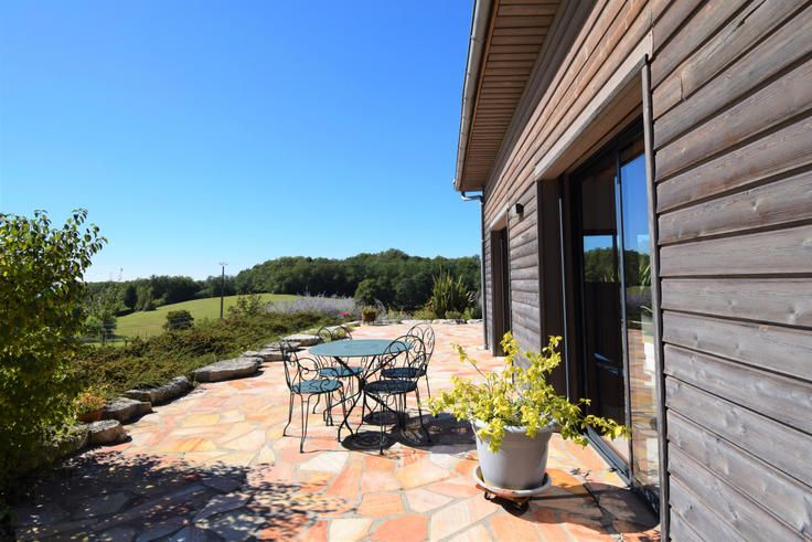 Référence du bien: ATHENA- Céline Labrousse vous présente en exclusivité une magnifique bâtisse récente à sept kilomètres au sud d'Excideuil. EN TERMES D'AMENAGEMENT: Cette maison construite en 2017 dispose de très beaux volumes: un grand séjour ouvert sur cuisine sur une totalité de 97m², deux suites parentales avec chacune leur salle d'eau privative, un cellier / chaufferie et un garage de 60m². (une troisième chambre est réalisable très facilement en prenant un peu d'espace sur le garage.) L'ENVIRONNEMENT A l'extérieur, vous découvrirez un grand terrain de 3250m² environ entièrement clôturé. Le tout donnant sur une belle vue paysagée, très au calme et à à peine un kilomètre d'un petit bourg avec les premières commodités. QUELQUES PRECISIONS: - terrainentièrement clôturé. - double vitrage et volets électriques à lamelles réglables. - chauffage au sol électrique et présence d'un poêle à bois. - climatisation réversible. - très bonne isolation. - électricité conforme. - assainissement individuel conforme. - taxe foncière 1150 euros. (A noter que la plus-part du mobilier pourra être inclus dans la vente: Canapé, literie, électroménager...) (Honoraires de 5% TTC inclus à la charge de l'acquéreur.) Votre agent commercial 3G IMMO sur place EI - Céline LABROUSSE Inscrite au RSAC de PERIGUEUX 524 970 340, Tel : 06 70 90 51 01, Site 3gimmo : https://www.3gimmobilier.com/labrousse Selon l'article L.561.5 du Code Monétaire et Financier, pour l'organisation de la visite, la