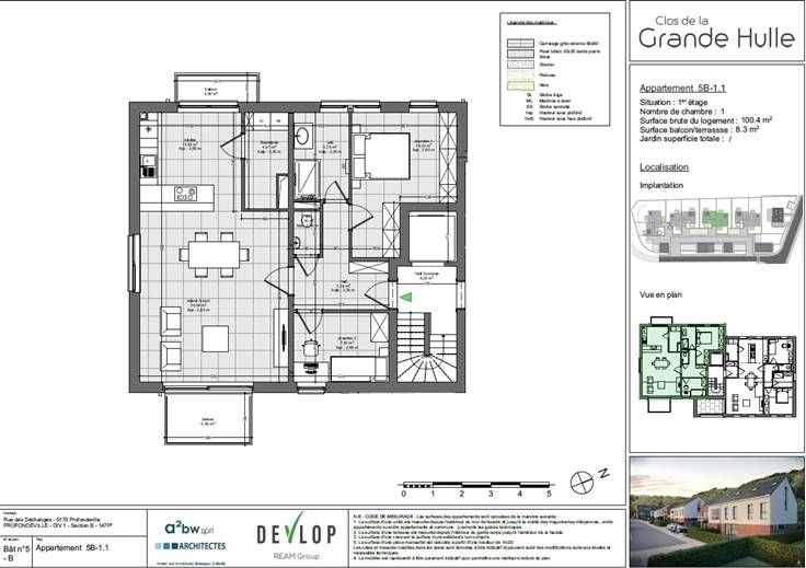 Sorry er is geen nederlandse vertaling beschikbaar. Situé dans un cadre calme et agréable , au premier étage, spacieux et lumineux appartement de standing de 100,4m², 1 ch et 1 bureau (possibilité petite ch), deux terrasses de 5,5 et 2,9m², bénéficiant de tout le confort moderne (cuisine équipée salle d'eau, buanderie , panneaux solaires, châssis DV, VMC double flux, isolation acoustique et thermique). Parking et cave en supplément. PEB A (provisoire). Vente sous Loi Breyne. Droits d'enregistrement 12.5% sur le terrain et tva 21% sur la construction. Livraison septembre 2024. Pour plus de renseignements: www.winstone-immo.be ou via le 0800 17 977.