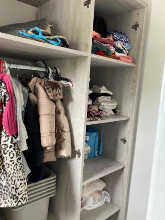 Rez : hall d’entrée, wc avec l.m., séjour (salon, sàm) semi open space avec cuisine semi équipée (four, taque, hotte, évier), buanderie avec dévidoir, salle de bains avec douche italienne, meuble lavabo, terrasse, jardin d’agrément, abri de jardin