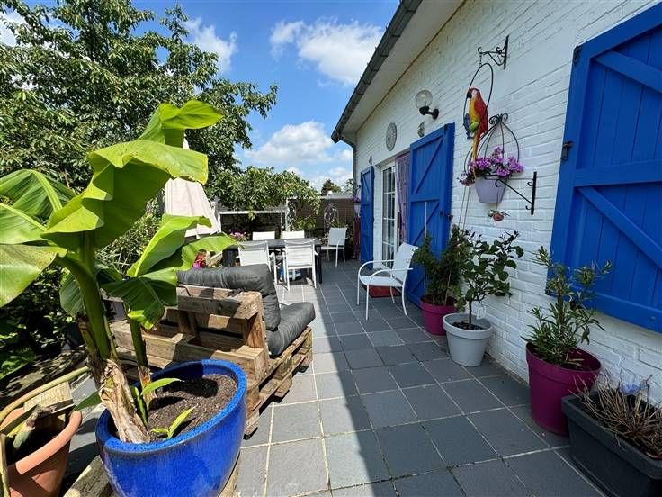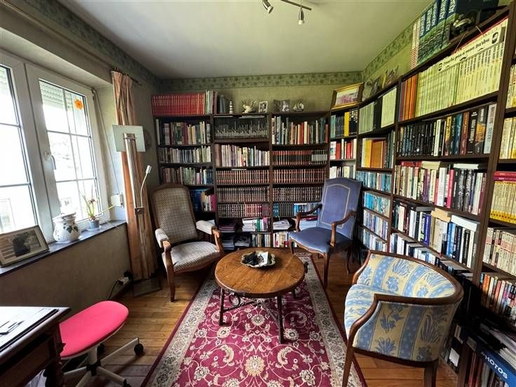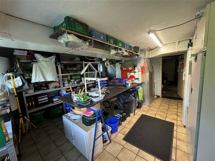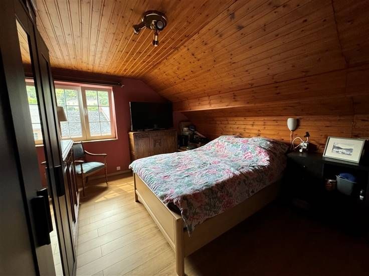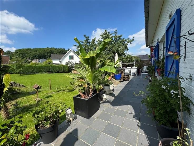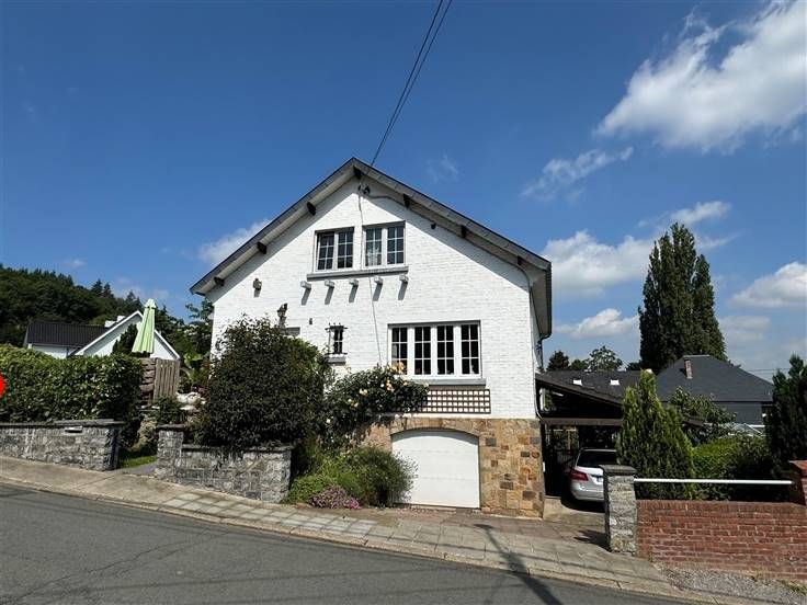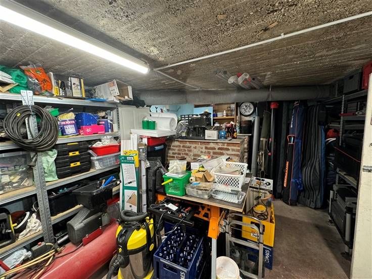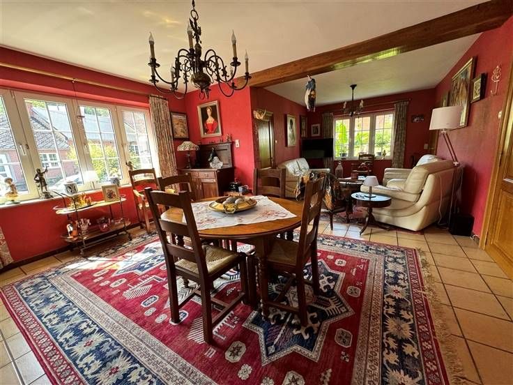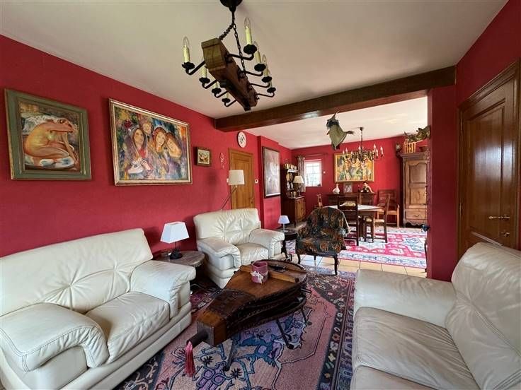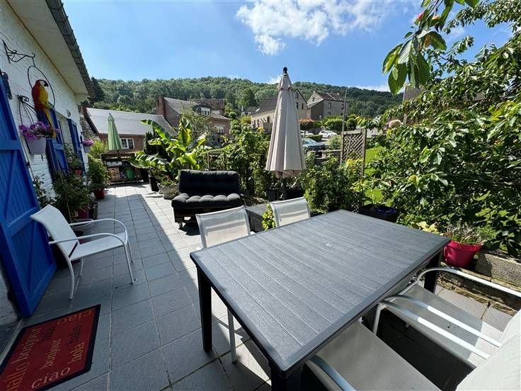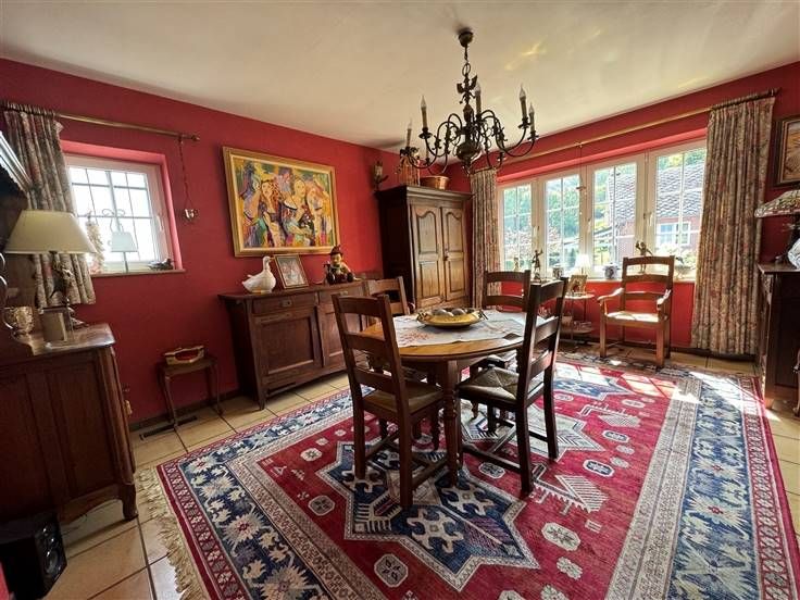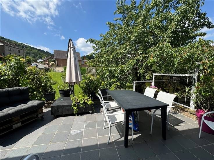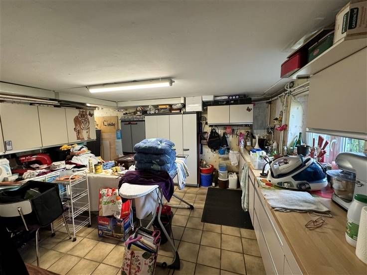 Caves, garage, atelier, seconde cuisine, terrasse, jardin sur 555 m2. DV, CC mazout, PEB à E, RC 1155€.