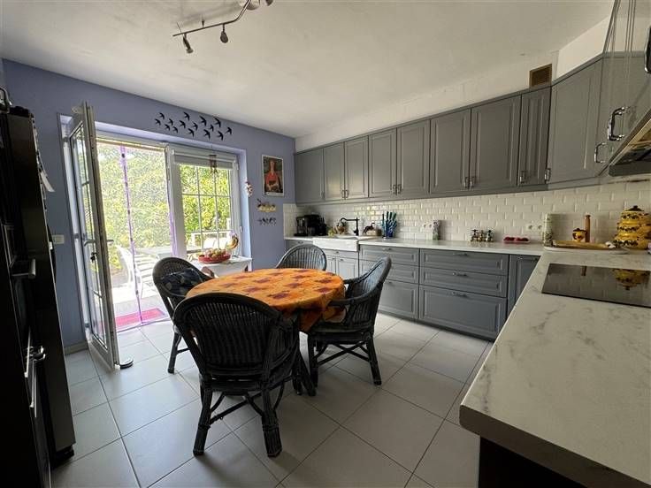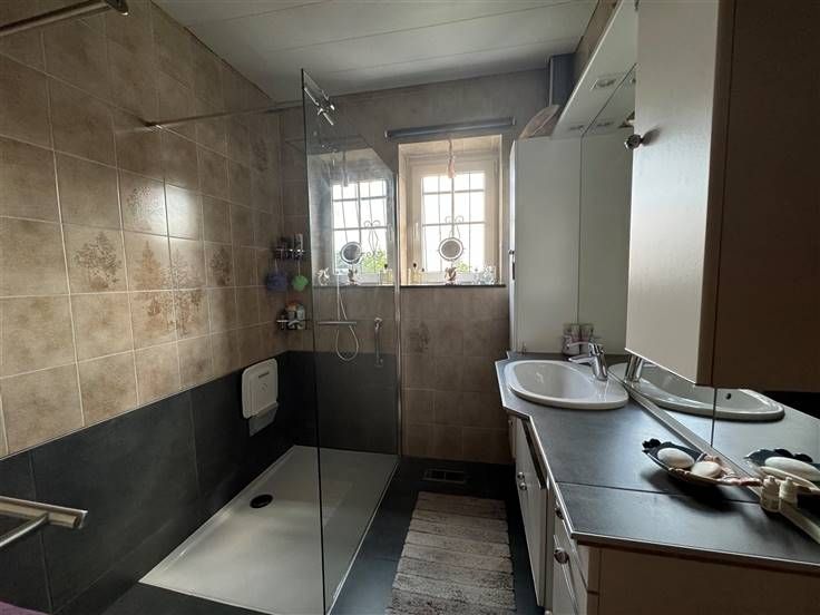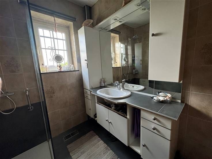 Villa lumineuse de 3 ou 4 chambres, (3 au premier étage et 1 au rez act bureau), salle de douche italienne, cuisine USA super équipée, beau living, hall d'entrée + wc.