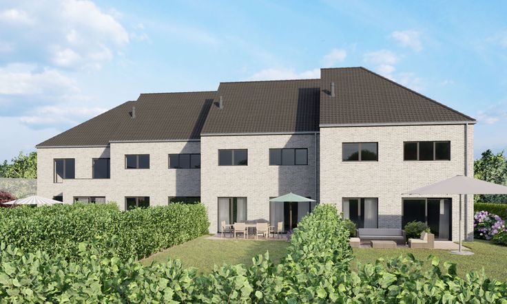 In Drieslinter langs de Grote Steenweg worden 5 prachtige geschakelde woningen opgetrokken met krachtige architectuur en mooie ruime tuinen achteraan. U kiest uit half-open of gesloten bebouwing.