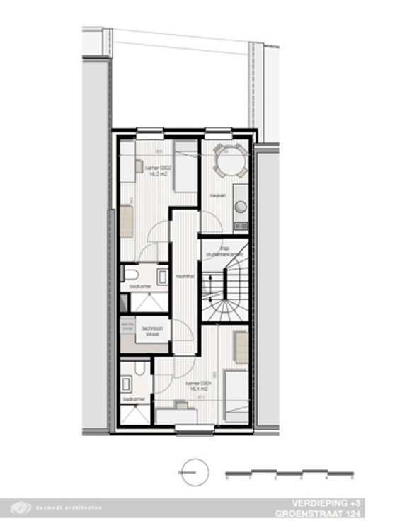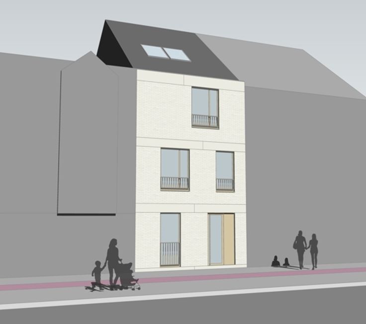 Goed gelegen projectgrond voor een eengezinswoning en 3 studentenkamers met gemeenschappelijke ruimtes.