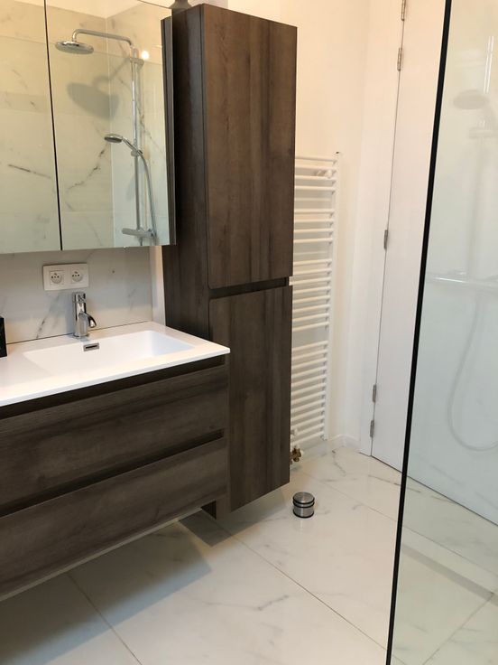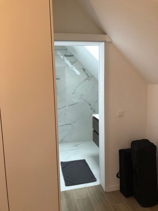 zeer aangenaam welonderhouden 2 slpk + 2 badk appartement (bj 2020) op de eerste verdieping in gebouw met 3 app, lift rechtstreeks in appartement (rolstoelvriendelijk), uitgeruste keuken, badkamer met ligbad, inloopdouche dubbele lavabo, ladderradiator, 2 ruime slaapkamers waarvan 1 met ensuite douchekamer + lavabo, ingemaakte kasten, cv op gas, vloerverwarming, (cv-)berging, terras 9m² ZW-georiënteerd prachtig uitzicht, een openlucht autostaanplaats. EPC in aanvraag. GEEN MAKELAARS GEEN EPC-deskundigen. De weergegeven foto’s zijn van het bovengelegen appartement dat qua indeling en afwerking zeer gelijkaardig is.