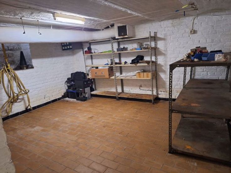 Vous trouverez au rez-de-chaussée un hall d'entrée-couloir, 2 caves, un grand living de 37m², une lumineuse cuisine et une véranda permettant l'accès à un jardin d'environ 70m².