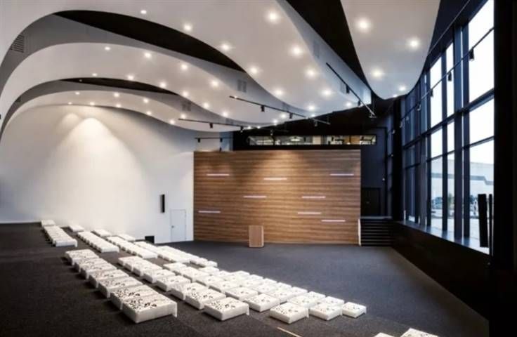 Het kantoorgebouw beschikt over een receptie- en ontvangstruimte, cafetaria, ruimte voor catering, aula- en vergaderzalen, laad- en losruimte.