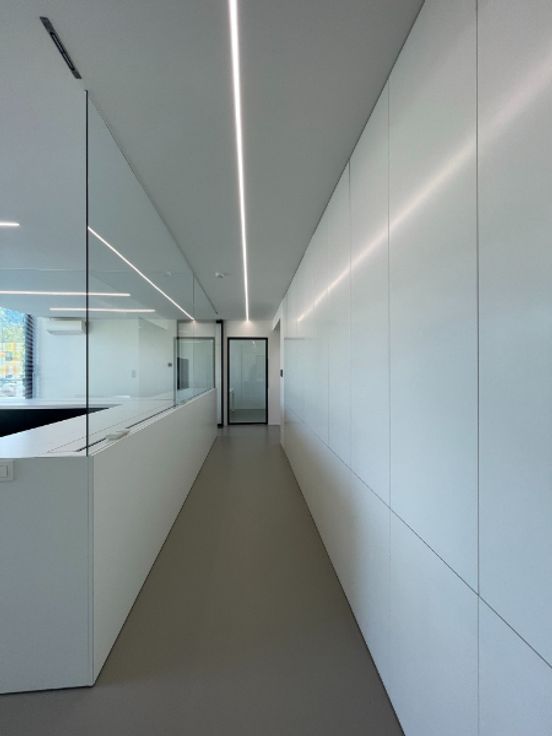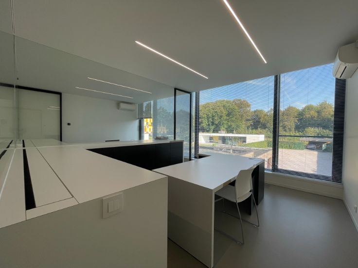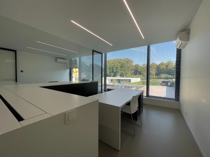 Het lichtrijke kantoor is instapklaar en voorzien van meublilair en ingebouwde dossierkasten alsook kabelvoorziening.
