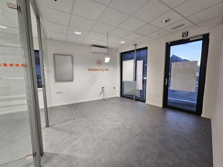 Het mooi ingerichte gelijkvloers, dat voorheen dienst deed als bankfiliaal, omvat een inkom/onthaalruimte, een technisch lokaal, een datalokaal, 4 aparte bureauruimten, een vergaderzaal, een kitchenette, een apart toilet en een garage. Het gelijkvloers leent zich, eventueel mits enige aanpassing, perfect tot de uitoefening van verscheidene activiteiten.