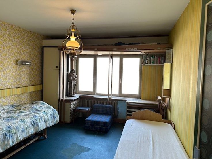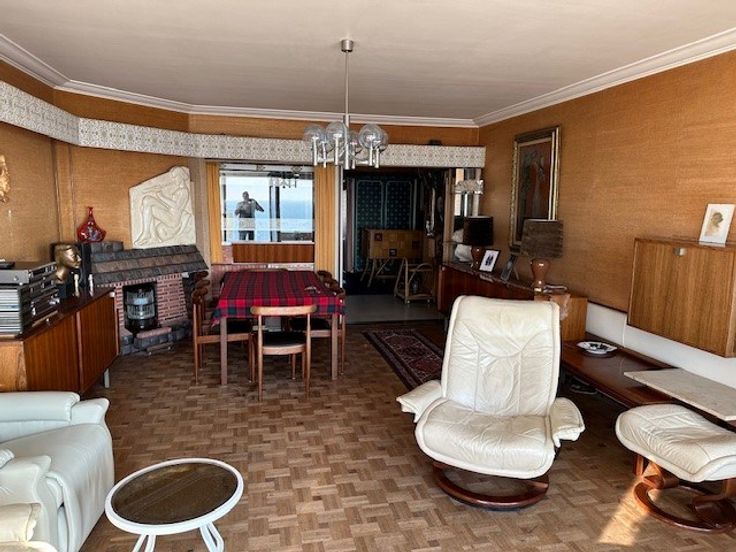 Wat betreft het eigenlijke grote appartement met frontaal zeezicht is een renovatie wel aan de orde. De residentie is reeds volledig in orde en vormt een uitstekende basis om na renovatie naar uw eigen smaak van het app. ook zelf weer 30 jaar op uw gemak te zitten. De ramen ter hoogte van de Zeedijk werden reeds vernieuwd. Grote troef van dit appartement naast z'n eerstrangsligging zijn de grote oppervlaktes en vooral z'n praktische ruime indeling. Indie