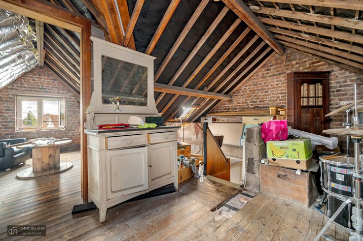L'Immobilière de MARNEFFE biedt u dit vastgoedcomplex aan bestaande uit een charmant huis met 3 slaapkamers om te renoveren, een werkplaats/schuur van +- 250m² en een tuin (bebouwbaar) aan de zijkant van het huis, alles op een perceel van +- 1200m², in het centrum van Borgworm. De woning is op het gelijkvloers als volgt samengesteld: veranda, inkomhal, lichte en warme woonkamer met eiken schrijnwerk, keuken, kantoor/veranda van 16m². Op de 1e: nachthal, 3 slaapkamers, doucheruimte met toilet. Op de 2e: inrichtbare zolder van 43m². Op -1: hal met toilet, wasruimte van 12m², stookruimte, kelder en garage van 17m² toegankelijk via de achterzijde van de woning. Buitenkant: aangenaam terras, zijtuin van +-550m² (mogelijkheid tot bouwen aan de straat), centrale oprit (mogelijk parkeren) die leidt naar de werkplaats en de garage. Werkplaats/hangar van +-250m² op de begane grond, goede plafondhoogte (+-3m80), zeer lichtinval, berging/opslag mogelijk op zolder, toegang via rolluiken. Goed gelegen op 2 kadastrale percelen, de eerste inclusief het huis en de tuin, de tweede inclusief de schuren. Werken: plan de volledige modernisering van het pand (essentieel: elektriciteit, keuken, isolatie) Troeven: dit pand zal u verleiden met zijn karaktervolle woning gekoppeld aan zijn uitzonderlijke bijgebouwen voor vrij beroep/atelier/garage in het centrum van Borgworm. Woning momenteel verhuurd en vrij voor akte, schuurvrij op 01/01/2025. RC van € 1645. PEB G 583kWh/m².jaar - n°202401020014378.