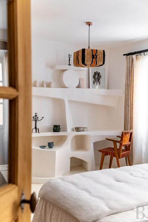 La propriété donne sur l'une des agréables rues piétonnières de Gassin, dont les façades en pierre sont à l'image de celles de toutes les maisons alentour. Celle-ci, édifiée sur deux niveaux, est issue de la réunification de trois petits logis, tournés vers l'ouest, aux élévations en pierre sobres et crépies, percées de cinq baies, droites ou cintrées, au rez-de-chaussée ainsi que de cinq autres, cintrées, à l'étage. Le toit en tuile ancienne est bordé d'une triple génoise et surmonté d'une souche de cheminée. Les volets provençaux, patinés par le temps, se laissent imaginer à demi fermés dans la torpeur de l'été, quand seul le bruit des insectes chanteurs peut interrompre la quiétude ambiante.