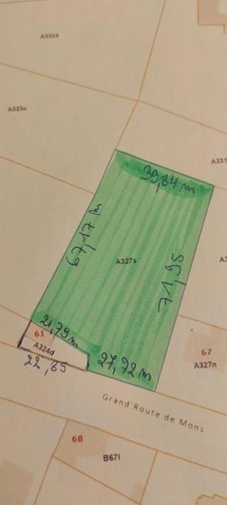 Beau terrain à bâtir Façade de +/- 27,72 mètres pour une profondeur de +/- 70 mètres Pour renseignements à l'urbanisme : SECTION A n° 0327SP0000 superficie 31 ares 67 ca