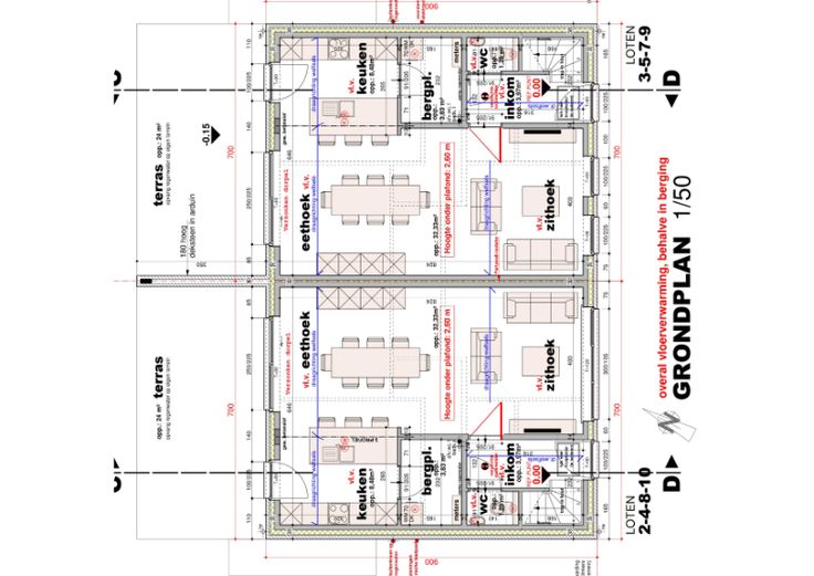 GELIJKVLOERS: inkomhal, toilet, zithoek, eethoek, keuken, bergplaats.