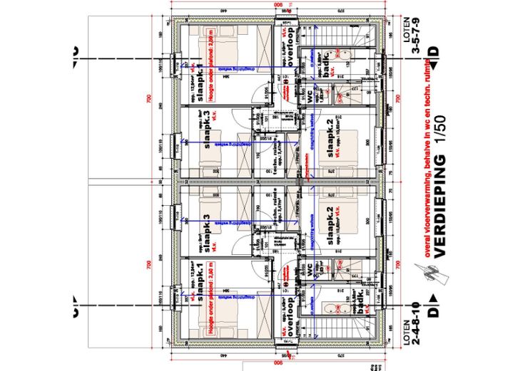 VERDIEP: trap; nachthal, 3 ruime slaapkamers, toilet, technische ruimte, badkamer.