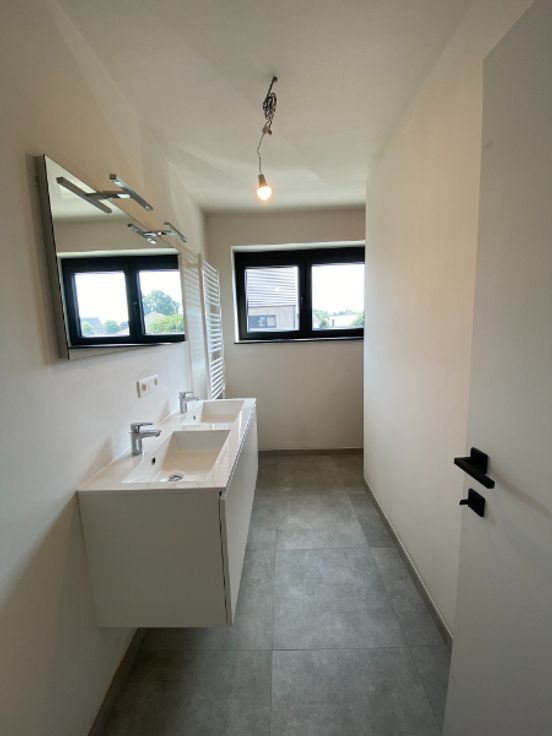 Nabij centrum Geel, in nieuwe verkaveling (zijstraat Heistraat/project van 9 woningen) op wandelafstand van scholen, station,/openbaar vervoer winkelstraten vindt u deze prachtige half open, afgewerkte nieuwbouwwoning gelegen in een doodlopende straat. E-peil: 9!!!! Zonnepanelen, luchtwarmtepomp met actieve koeling, vloerverwarming en bijkomend in badkamer sierradiator!